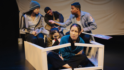 “The Troupe” is by Birds Migrant Theatre, which comprises migrant workers here. It’s a play within a play, where we witness a fictional troupe of actors rehearse a series of vignettes about displacement and migration.