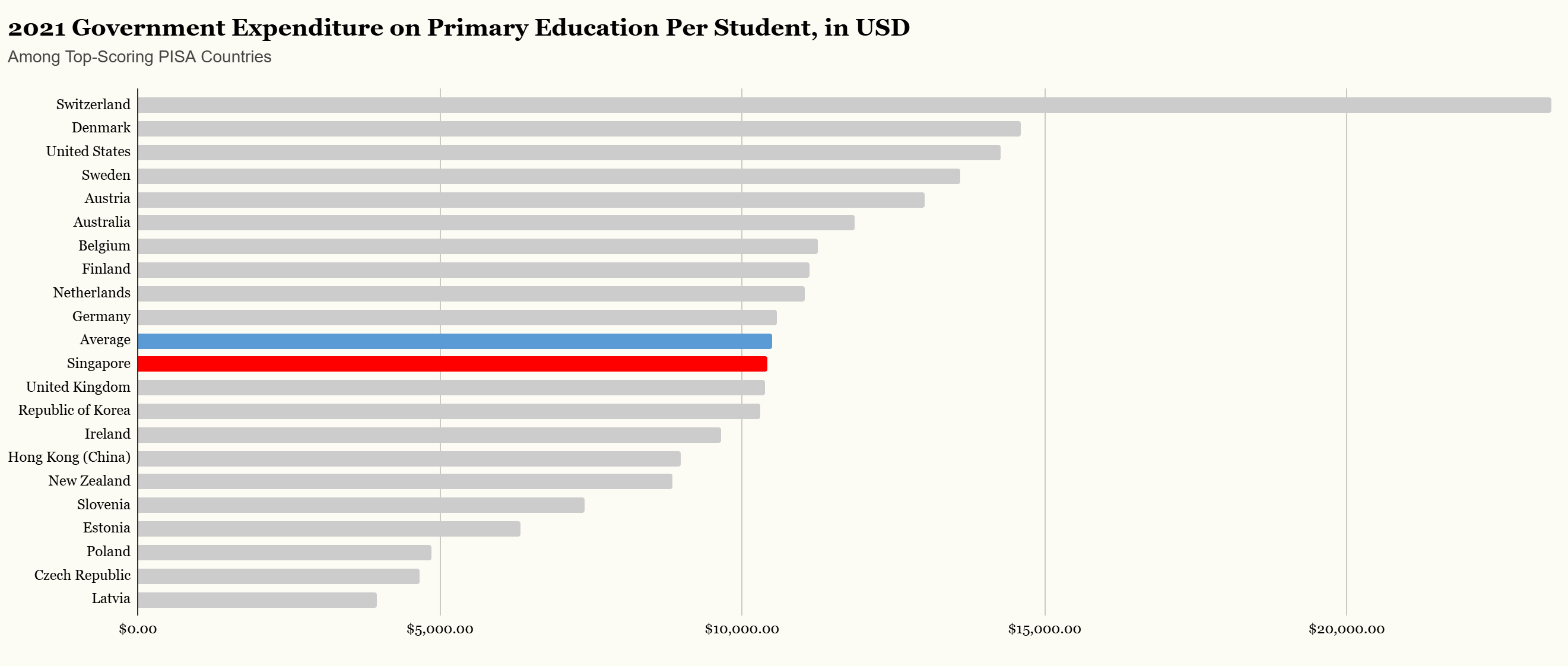 Reducing class sizes isn’t free. Education spending must be balanced against other national priorities, like infrastructure or healthcare. But here again, a comparison with our peer countries can be useful. Singapore is just below average when it comes to investment per student, spending US$10,412 per primary student in 2021, compared to an average of US$10,501 for other top PISA countries. (Figures are drawn from World Bank and UNESCO datasets, and may reflect differences in definitions of government expenditure.)