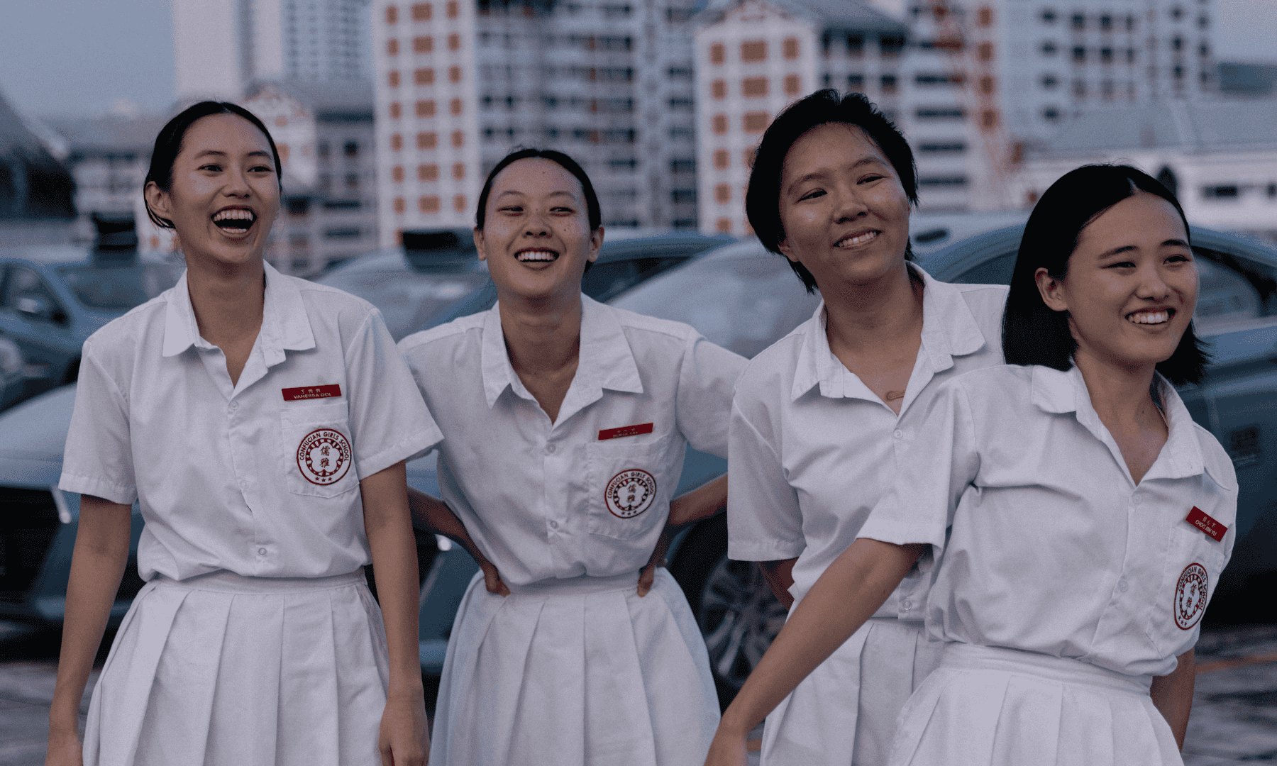 As a new student at Confucius Girls’ School, Xin Yu is not yet familiar with its rules. In a strict environment, there’s a perpetual negotiation at play when it comes to exerting your sense of self. You do this in ways both small (the length of your hair) and large (who your friends are). Over time, your individuality softens, becomes more malleable. You learn when to pull back, and how to push forward. Xin Yu’s classmates—affluent “it” girl Sofia (Lim Shi-An), earnest swim star Vanessa “Nessa” (Nicole Lee Wen) and class clown Eugenia “Gina” (Genevieve Tan)—are seasoned negotiators who recognise something of themselves in the newly-arrived misfit. They invite her to hang out at a construction site next to the main campus building, where the school is building a new pool.