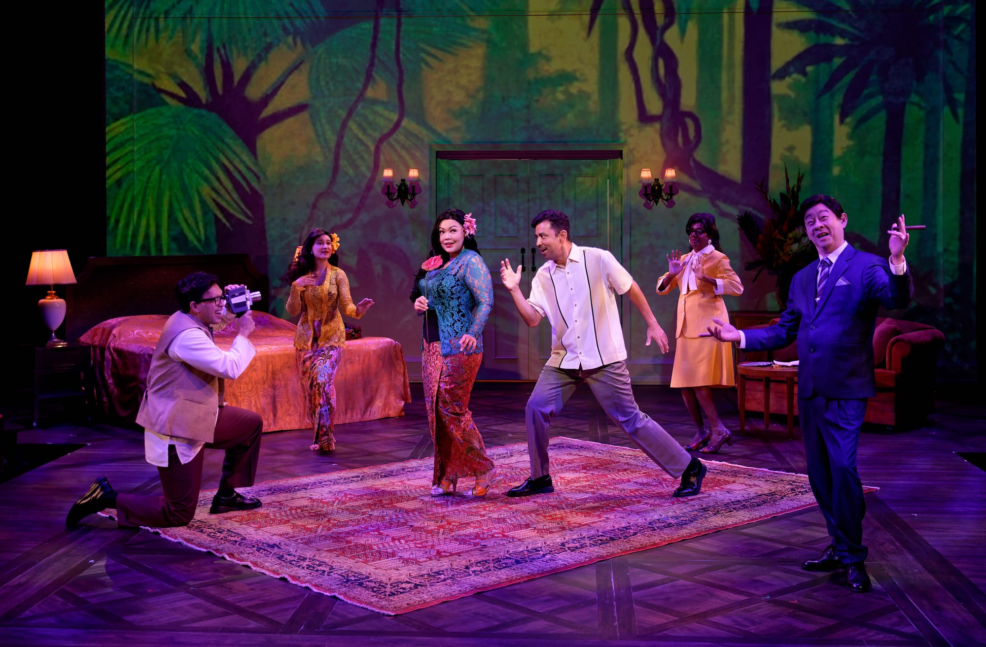 When we are hosted by others, we allow ourselves to be positioned and oriented towards what our hosts desire us to see; if the gestures of our hosts are particularly practised, we may overlook or be persuaded to ignore certain things. This is true of “Hotel”, even if Alfian, Vanderstraaten, director Glen Goei and the creative team desire to offer us an alternative and empathetic path through Singaporean history. Does that make “Hotel” an intermediary—or a gatekeeper? The play plays with agency on both an individual and national, even transnational level, to the extent that larger patterns of trade and neo-colonial exploitation are transnational. In a scene from 1955 depicting pioneering film producer Runme Shaw (Ivan Heng) and regional film phenomenon and multi-hyphenate P Ramlee (Ghafir Akbar), we see how the market’s demands shape language, approach and content. Wild Rice is one of the rare theatre companies in Singapore that has access to its own theatre, one that affords it a degree of agency and hospitality—but is simultaneously subject to other kinds of market forces and force majeure, such as a global pandemic or state censorship. As “Hotel” repeats, it is itself becoming a more formalised narrative of a certain perspective of history. The play can’t escape the semiotics of the SG50 frenzy (the heavy-handed marriage and separation metaphors in 1965, for one, as a couple goes through a break-up as anthropomorphic versions of Singapore and Malaysia); other chapters are starting to feel worn at the edges, playing well in 2015 but feeling dated in 2023 (the final scene exploring Singapore as a hub for new immigrants feels a touch xenophobic in parts, even if leavened by humour and parody).